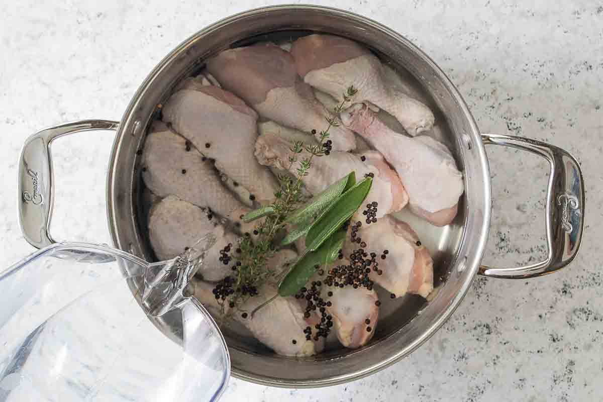 - Make sure that your stockpot is big enough to fit all of your chicken thighs. I like to use an 8-quart stockpot.
